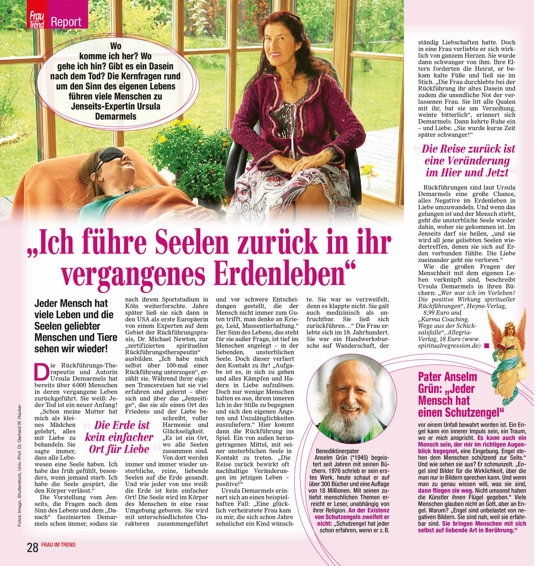 Teil 1 der 3-teiligen Serie Spirituelle Rückführungen: Die Reise der Seele in DIE GANZE WOCHE Nr. 42 (17.10.2007): Ursula Demarmels, die Wiedergeburts-Idee und spirituelle Rückführungen. Redaktion Medizin und Natur (pdf, 652 kB)